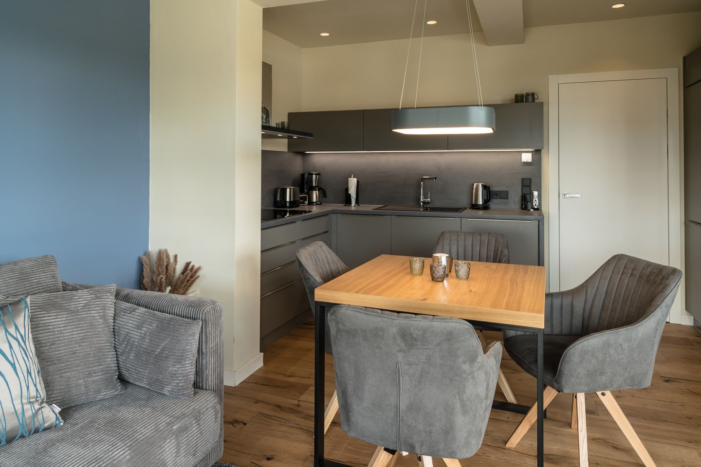 Die Ferienwohnung Sonnenschein, glänzt nicht nur durch warme Töne und hochwertige Materialien, sie entzückt auch mit allen Annehmlichkeiten, die Sie für Ihren Traumurlaub brauchen. Auf insgesamt 60 qm stehen Ihnen ein komfortables Schlafzimmer mit großem Boxspringbett, ein Wohn- und Essbereich mit hochwertiger Einbauküche sowie ein vollausgestattetes Duschbad zur Verfügung! Ein Highlight dieser Wohnung ist die eigene Infrarotkabine im Bad.